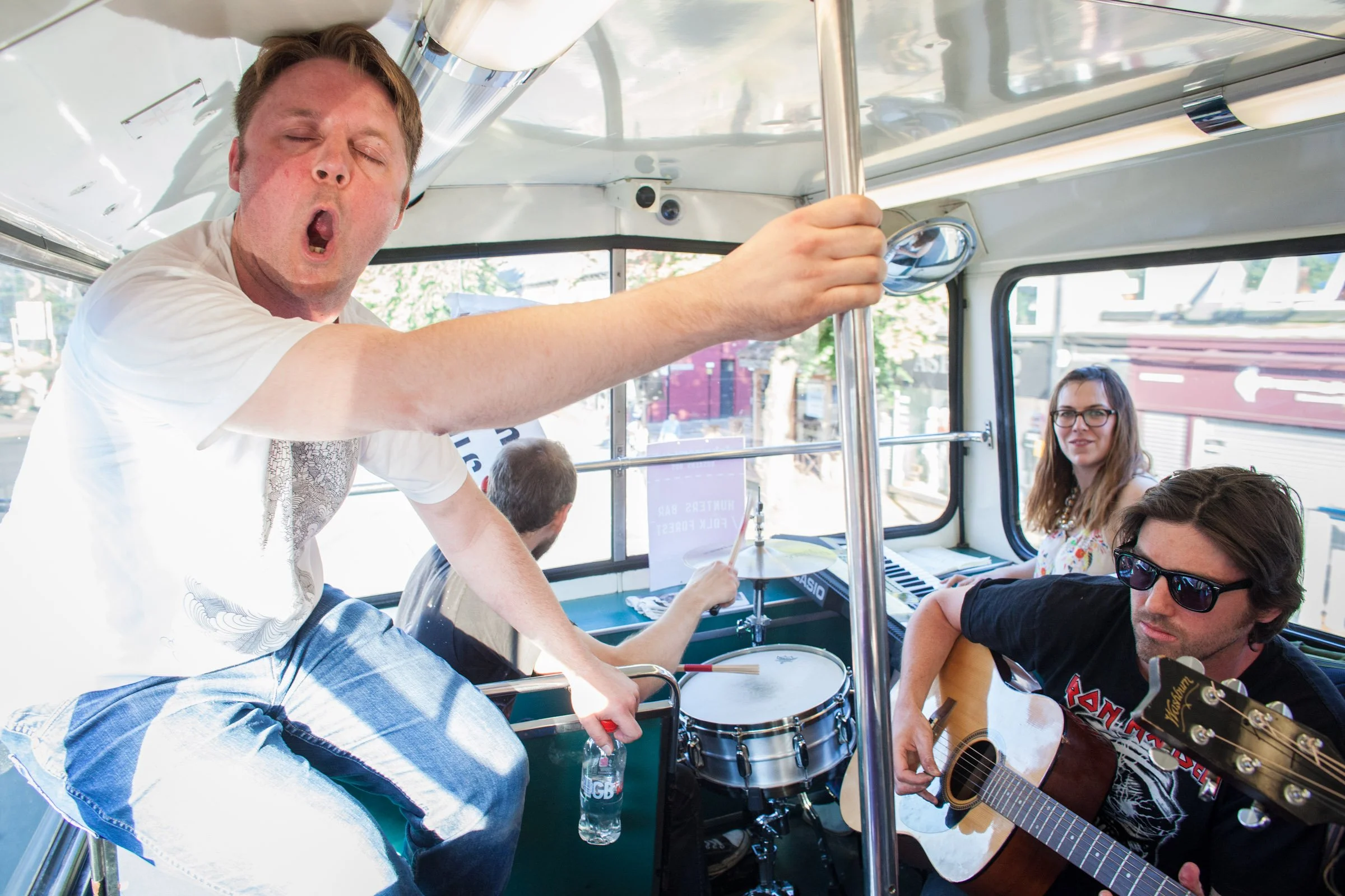 The answer came in the form of the Busker’s Bus. A 20-minute circular that ran all weekend, free for anyone with a festival wristband. On board, a rolling line-up of emerging artists played live sets while the bus linked the festival’s stages. What began as a way to ease demand on oversubscribed venues quickly became a festival within a festival.